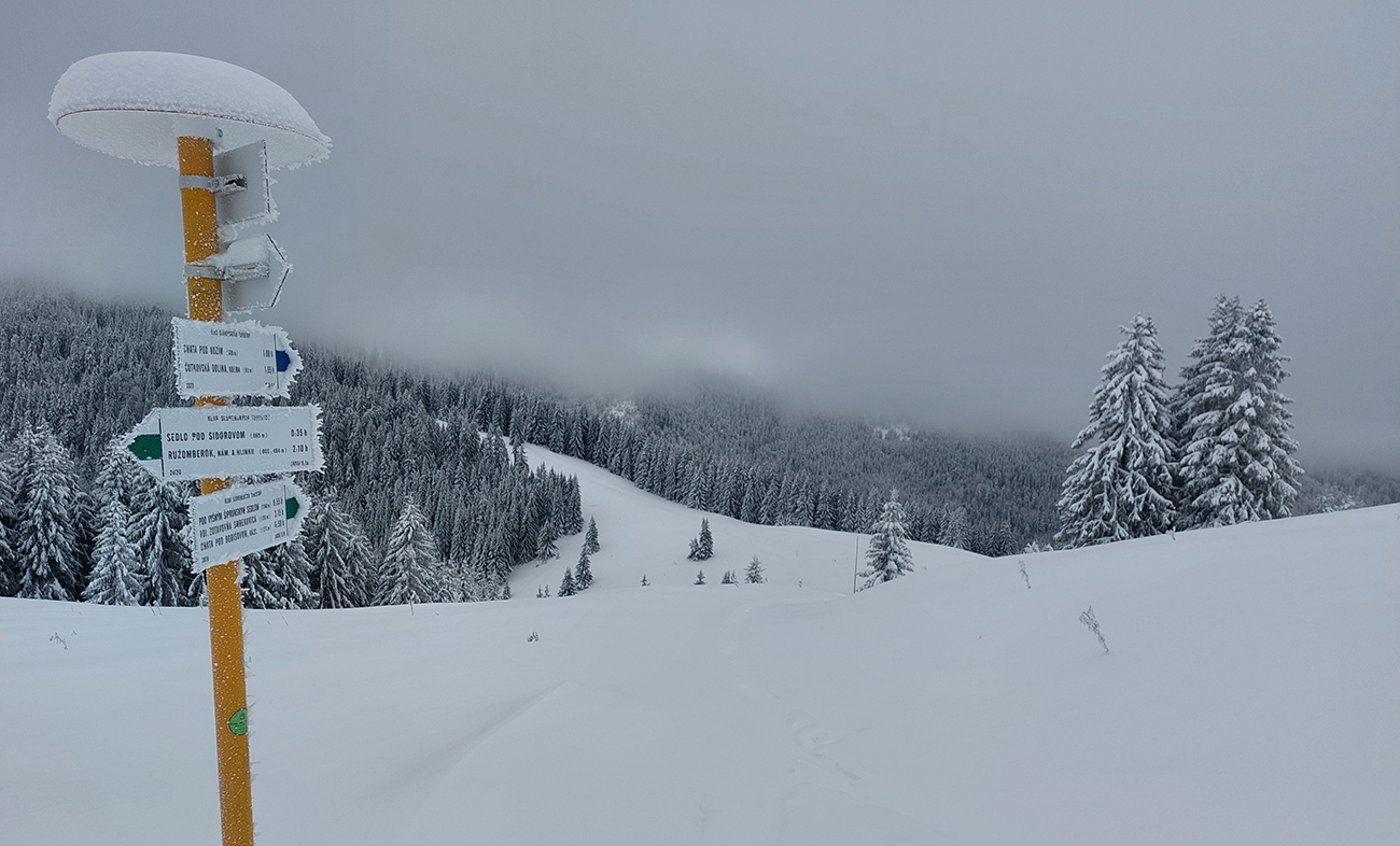 V tejto lavínovej štvorke bolo treba bezpečné miesta sobotných chlpatých radovánok voliť. Ale zase nie moc vysoko, lebo mraky, ani nie moc nízko, lebo tam furt snehu niet. Tak zas voľba padla na istotu – pasienky veľkofatranské. Pred týždňom sa na nich ešte mohli ovce pásť, teraz tam leží pol metra (aj viac) čerstvého, bieleho, bez základu samozrejme. Takto sa klimatická zmena prejavuje, ak by niekto ešte nevedel – čoraz väčšími extrémami.